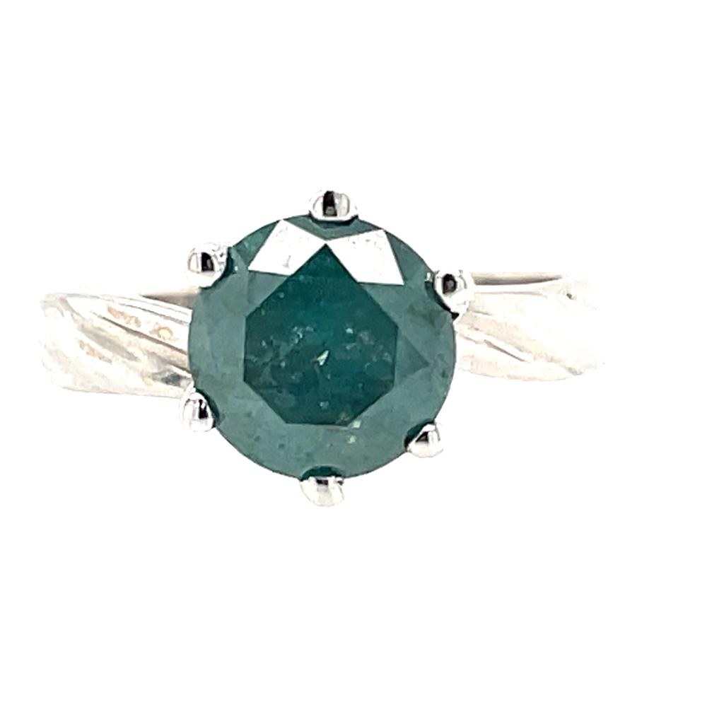 WHITE GOLD RING 14K 3.60 GR WITH 2.15 CARATS DIAMONDS BLUE ENHANCED COLOR I2 - R127