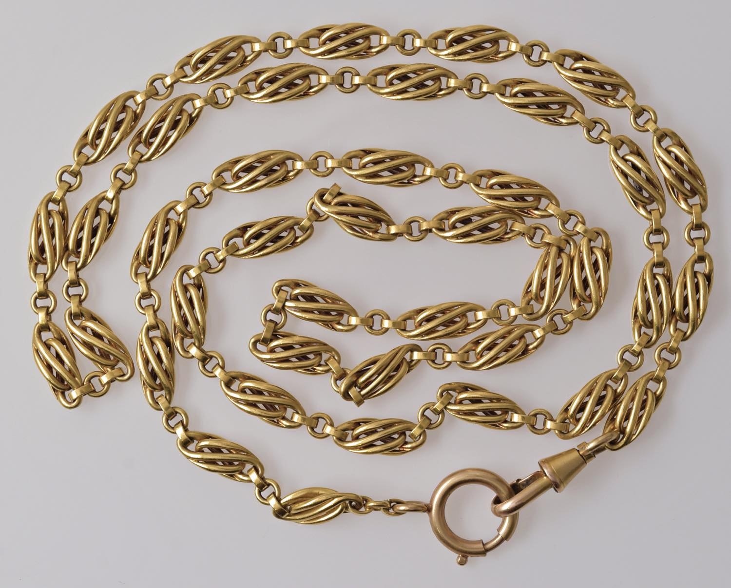 Catenella Charleston. Lunghezza complessiva (chiusa) 38 cm. Peso 49,28 g. Gli oggetti vengono venduti nello stato in cui si trovano. Esaminare foto o chiedere condition report, non si garantisce il titolo del metallo ed eventuale placcatura. Non verranno presi in considerazione resi o eventuali reclami