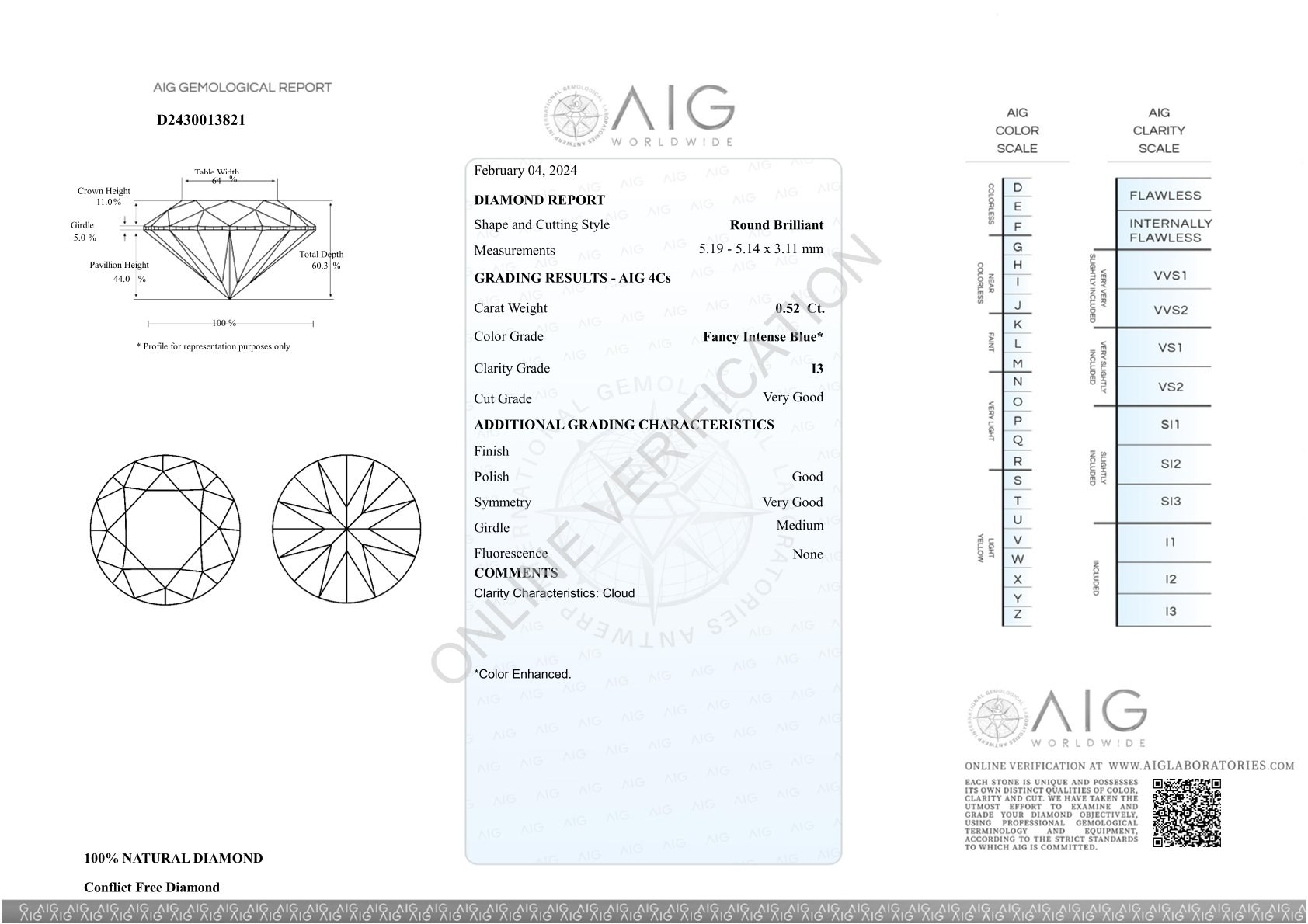DIAMOND COLOR ENACHED 0,52 CARATS COLOR FANCY BLU INTENSE* - CLARITY I3 - CLARITY SHAPE BRILLANT - CERTIFICATION AIG ONLINE - C31222-54-3