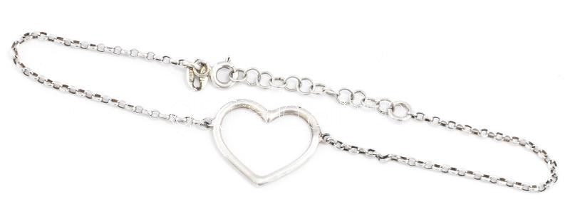 Ezüst (Ag) anker szemes karkötő szív középrésszel, jelzett, h: 18-21 cm, nettó: 2,2 g