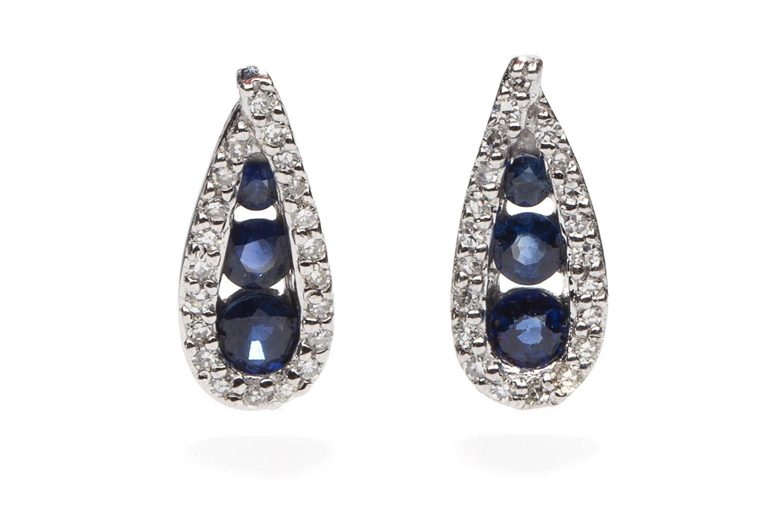 białe złoto pr. '3', 42 diamenty ł. ~ 0,15 ct I/VS-SI w szlifie 8/8, 6 szafirów ł. ~ 0,25 ct, masa: 1,63 g, wym.: 1,1 x 0,5 cm