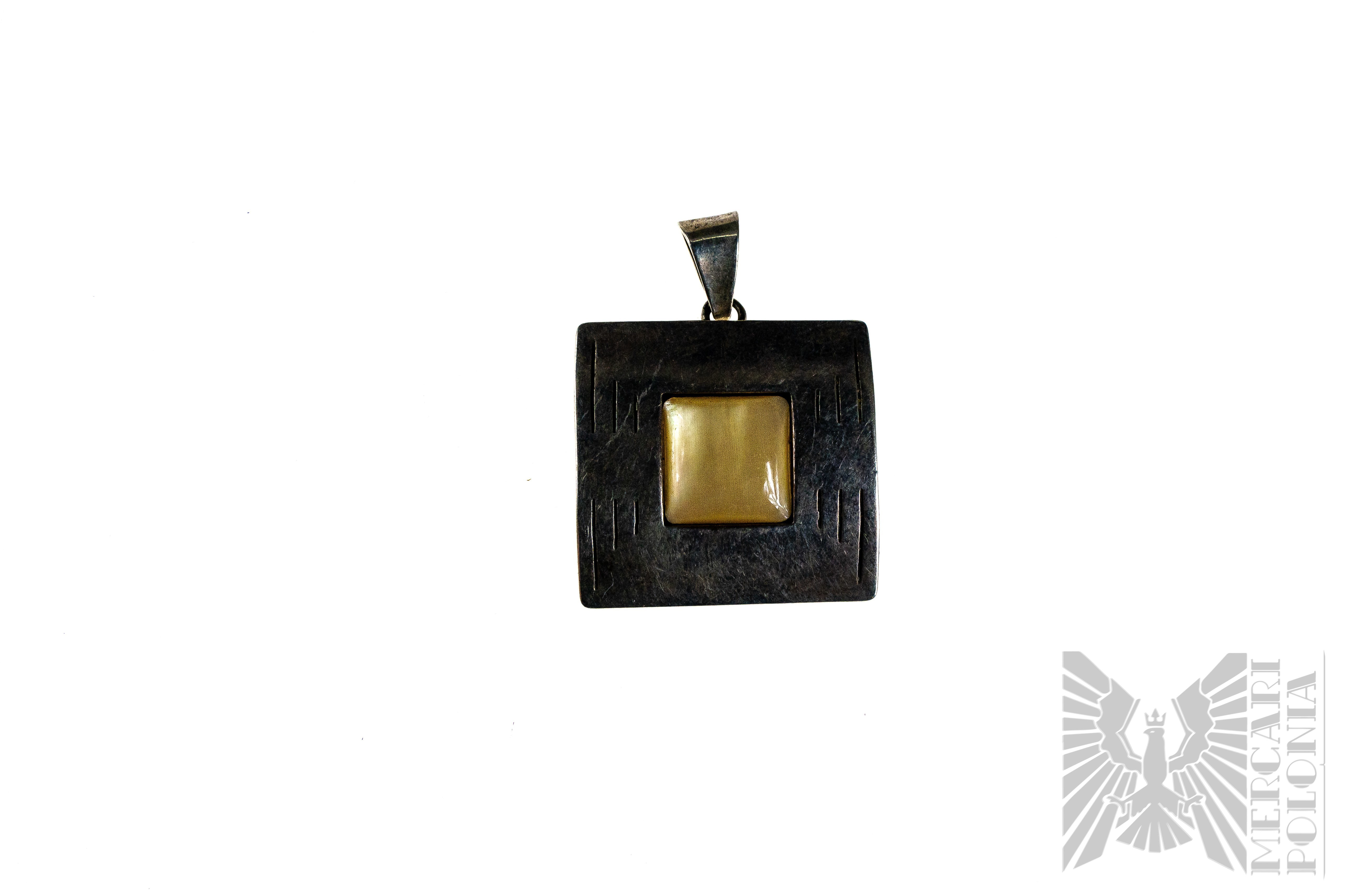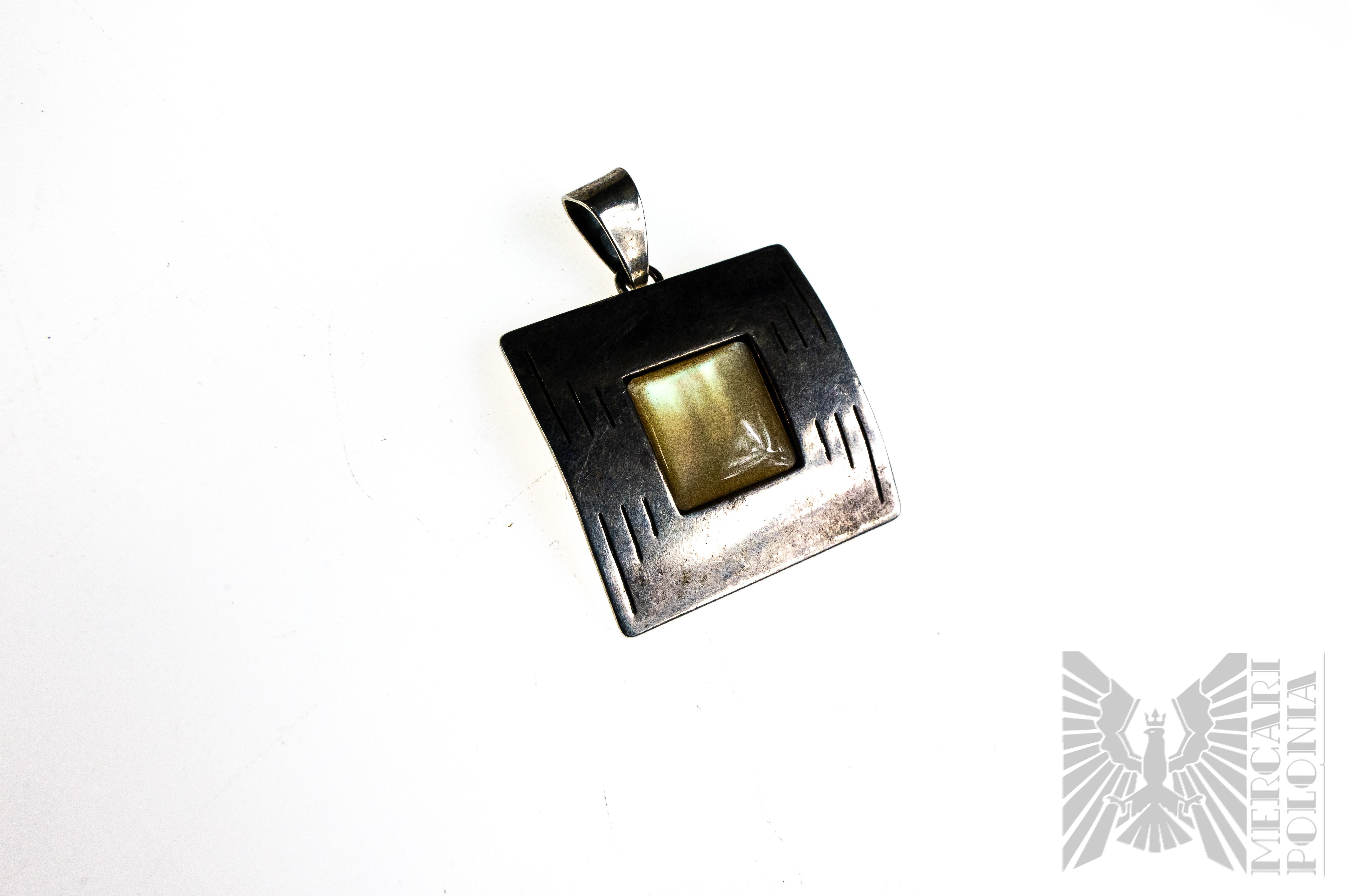 Kwadratowa Zawieszka z Masą Perłową, Srebro 925, masa wyrobu 6.21 gram, wymiary 28x28 mm, ocechowane w Białymstoku po 1986 roku