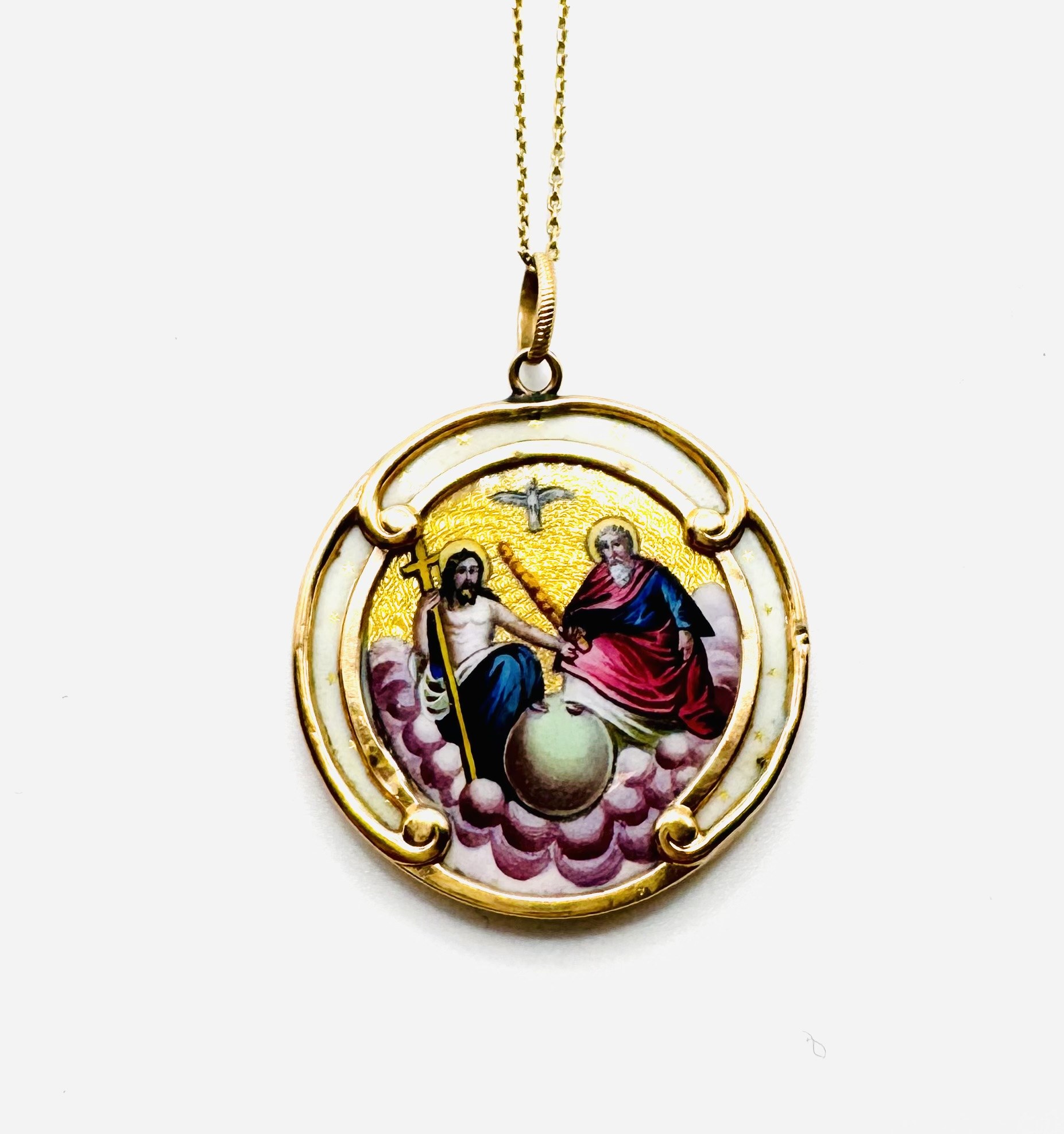 Medalik emaliowany przedstawiający Trójcę Świętą Starego Testamentu