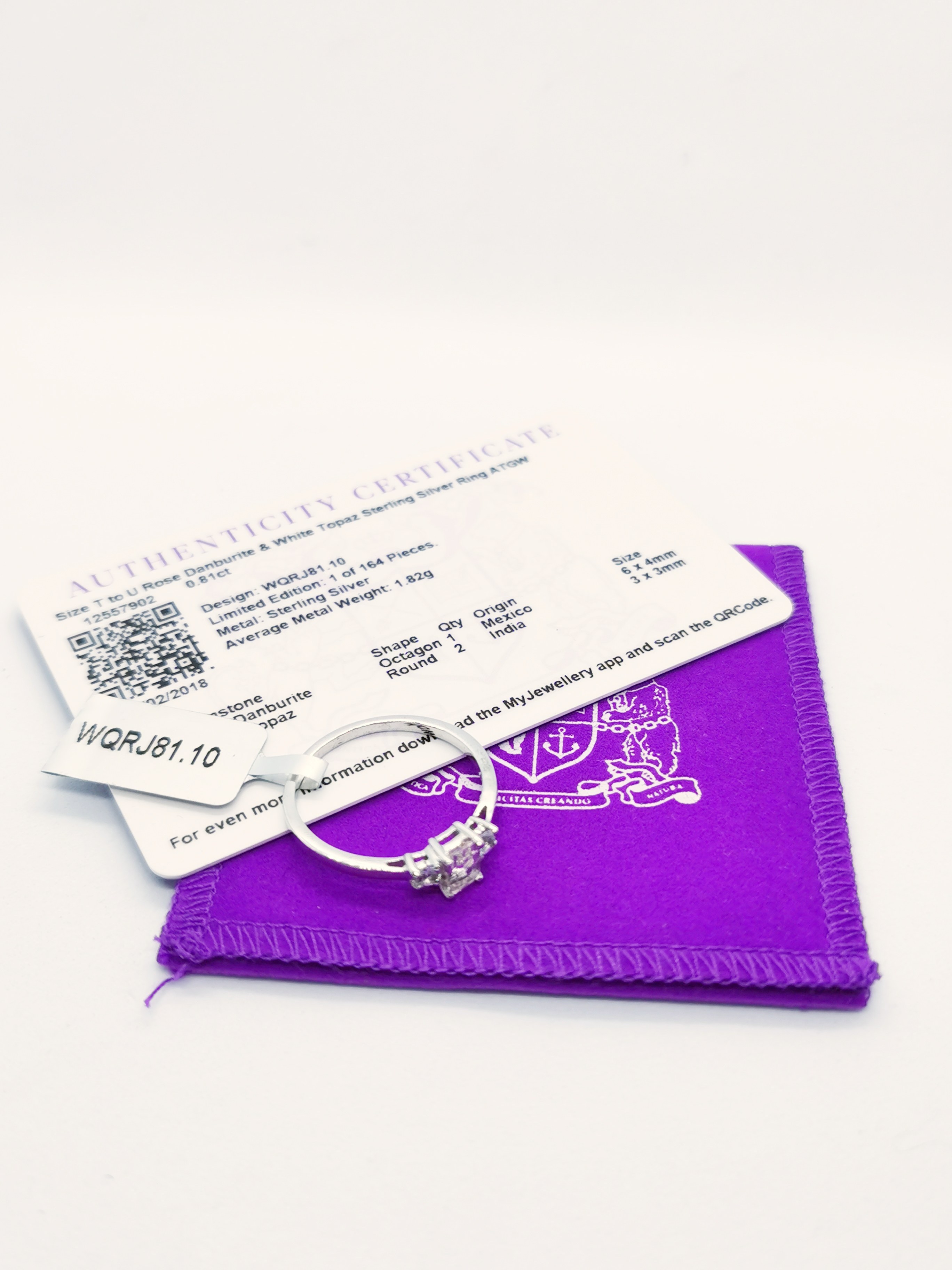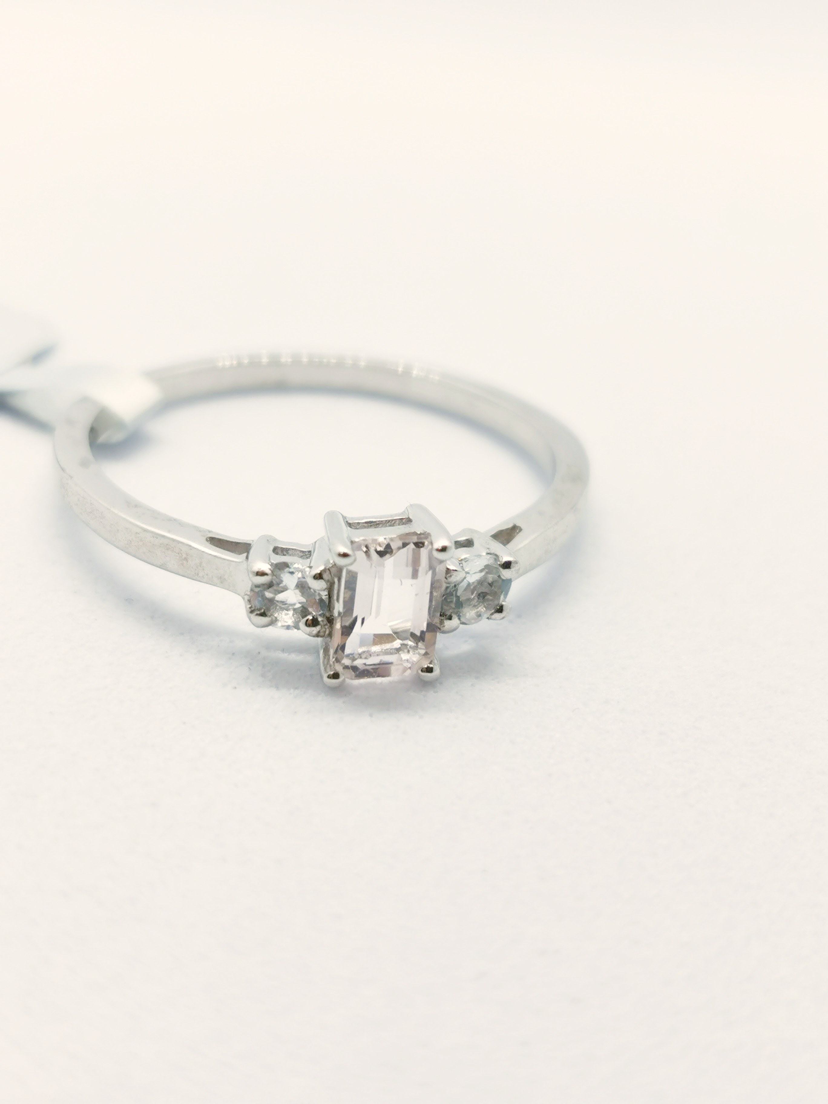 Pierścionek ze srebra z naturalnymi różowy dandenburyt i białe topazy