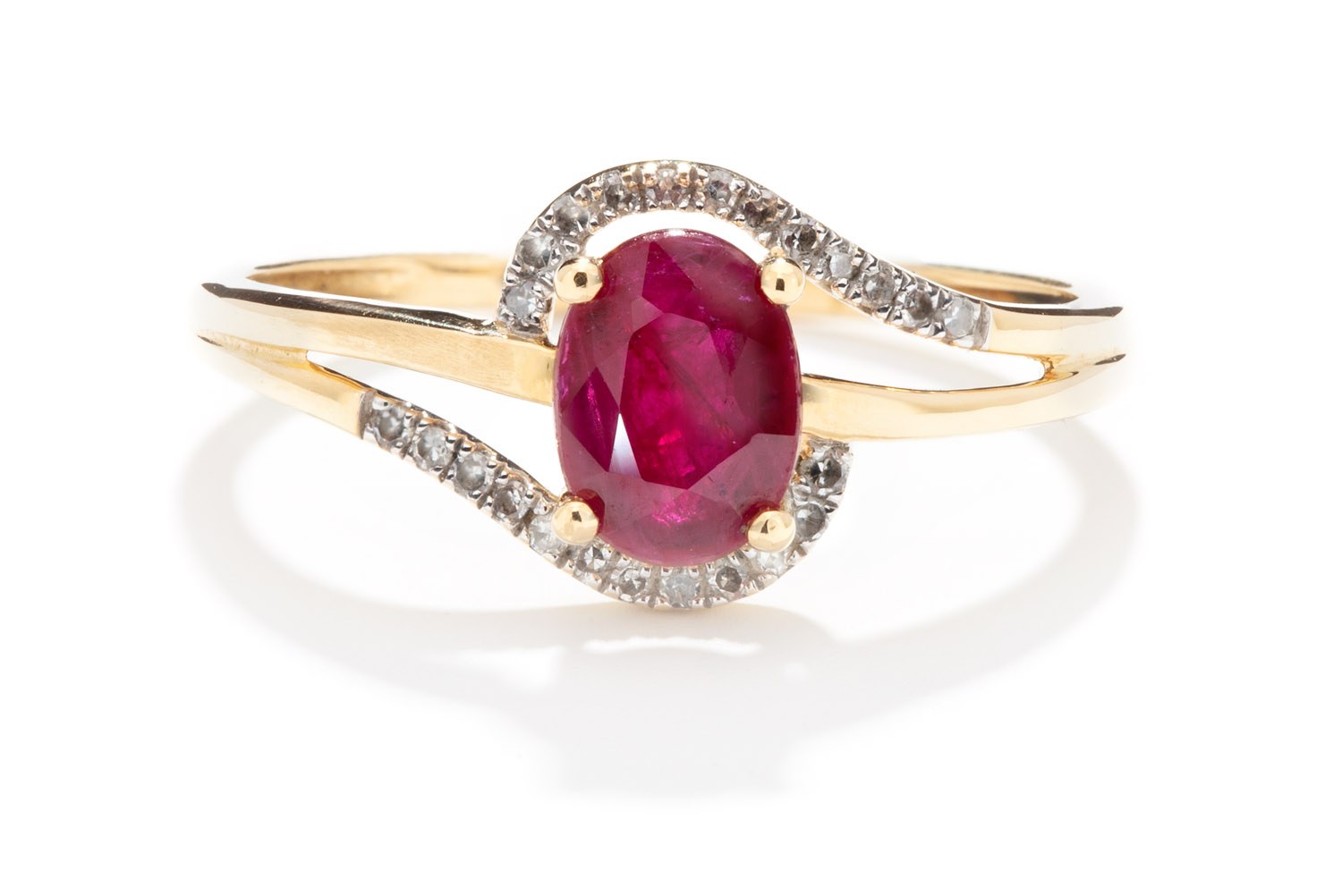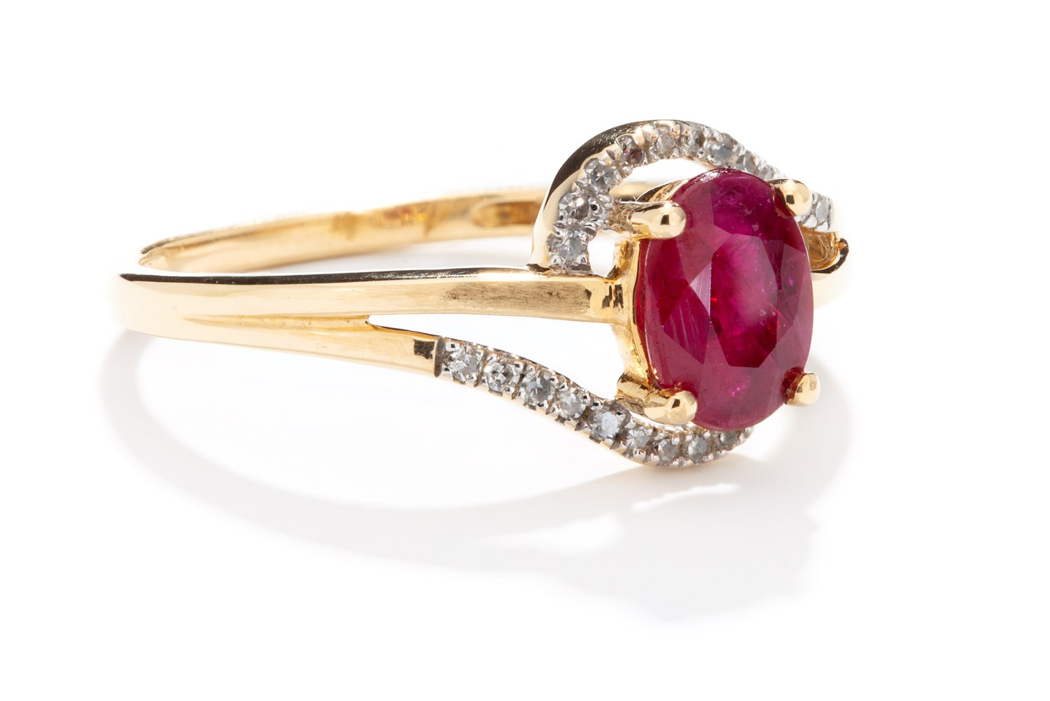 złoto pr. ~ 0,750, 1 rubin ~ 0,90 ct, 24 diamenty ł. ~ 0,15 ct J/VS-P w szlifie 8/8, masa: 2,18 g, rozmiar: 16*