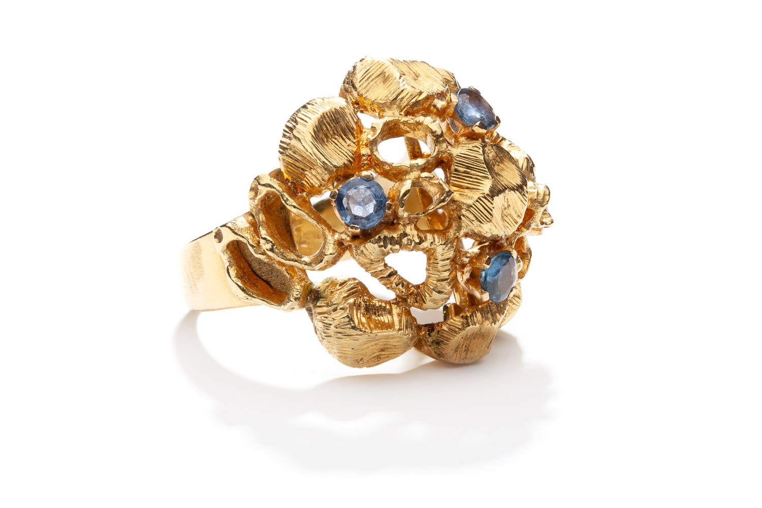złoto pr. ~ 0,750, 4 szafiry ł. ~ 0,55 ct, masa: 10,40 g, rozmiar: 10*
