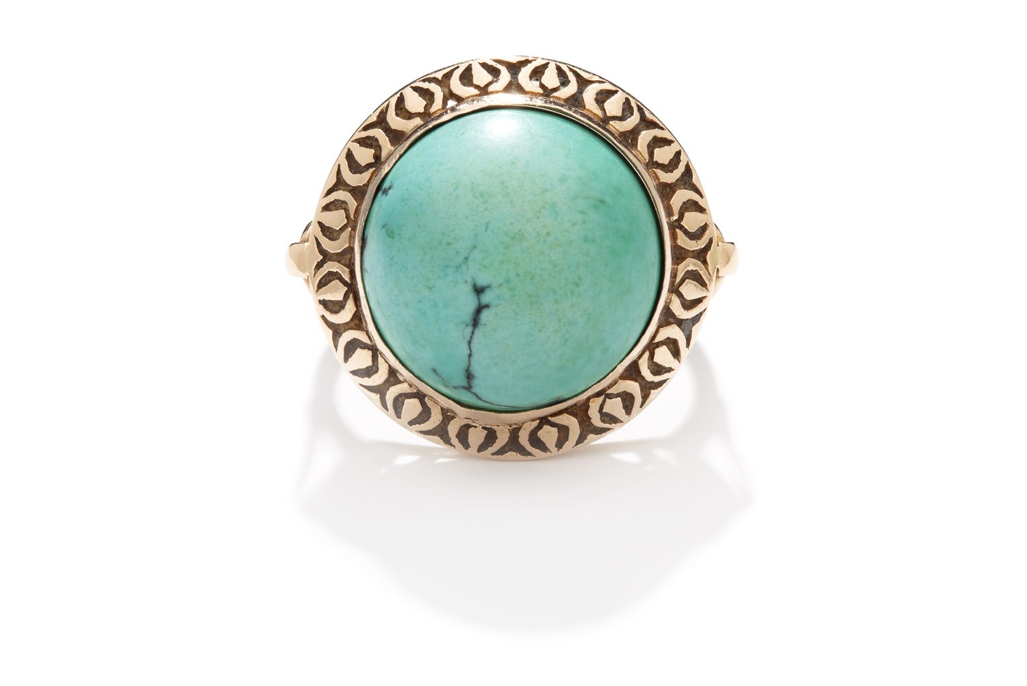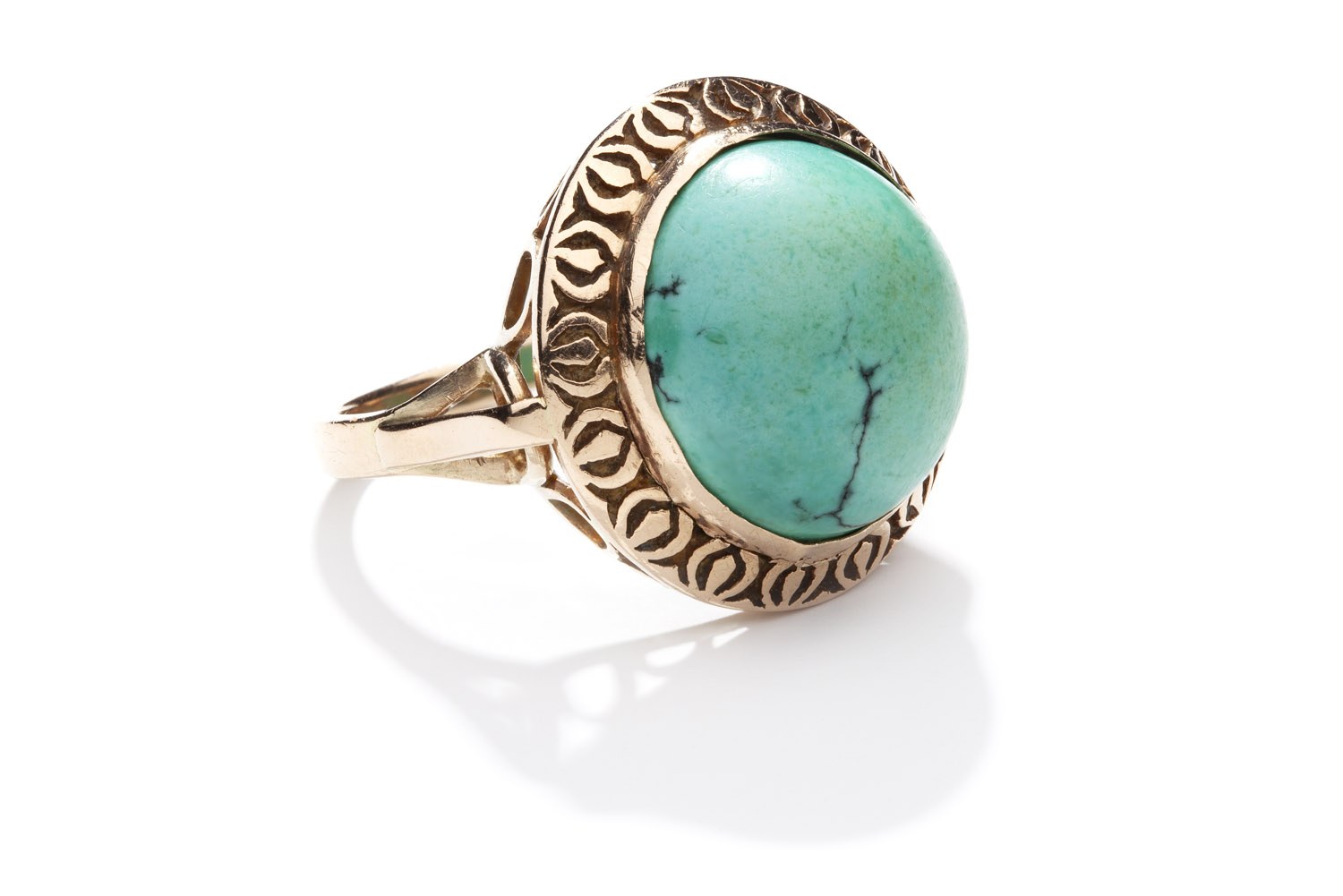 złoto pr. '3', 1 turkus tybetański o śr.: 15,5 mm, polska punca państwowa, próba złota '3', masa: 6,92 g, rozmiar: 16*