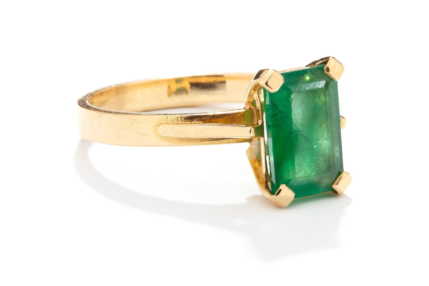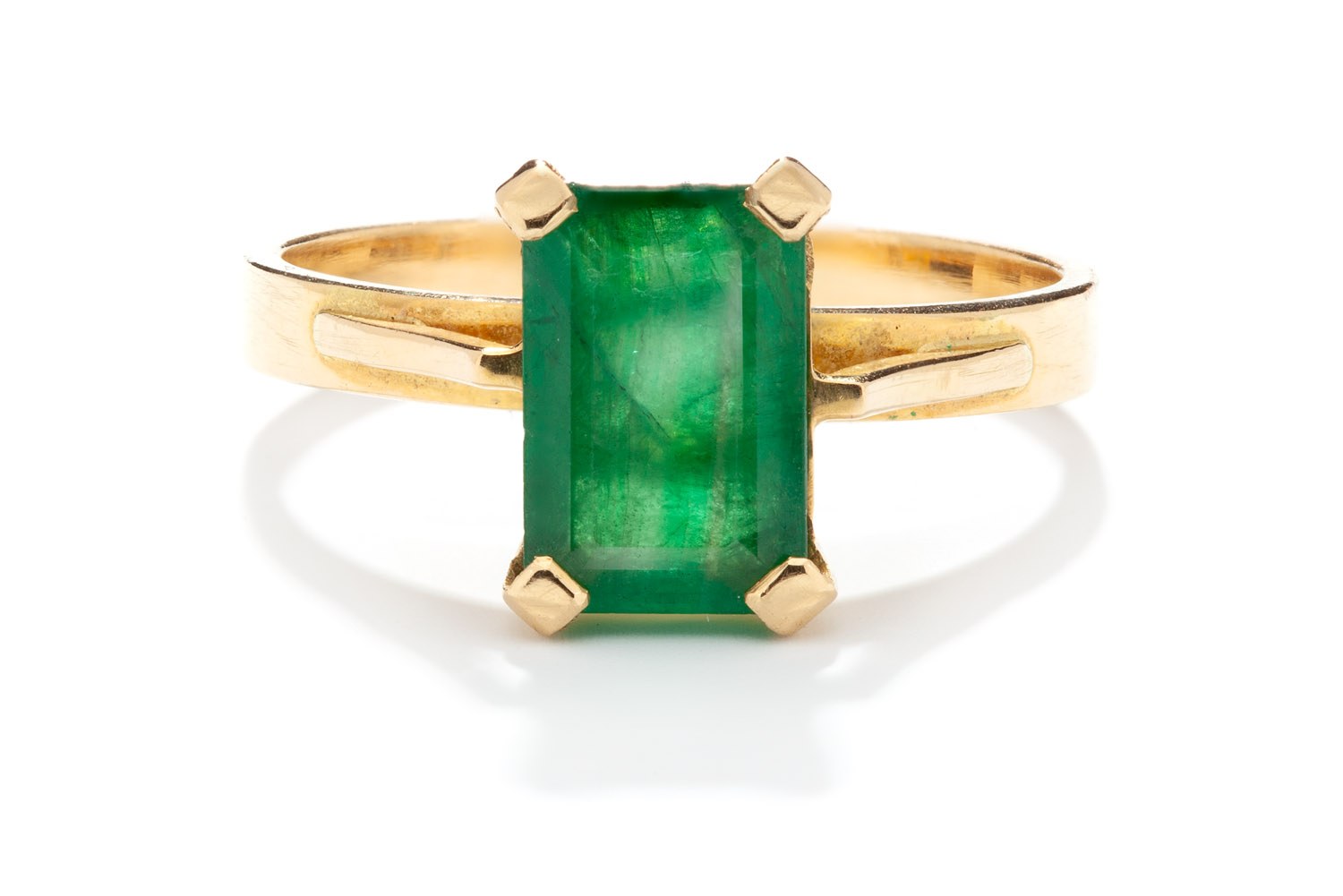 złoto pr. ~ 0,750, 1 szmaragd ~ 1,30 ct o wym.: 9,5 x 6 mm, masa: 3,06 g, rozmiar: 14*
