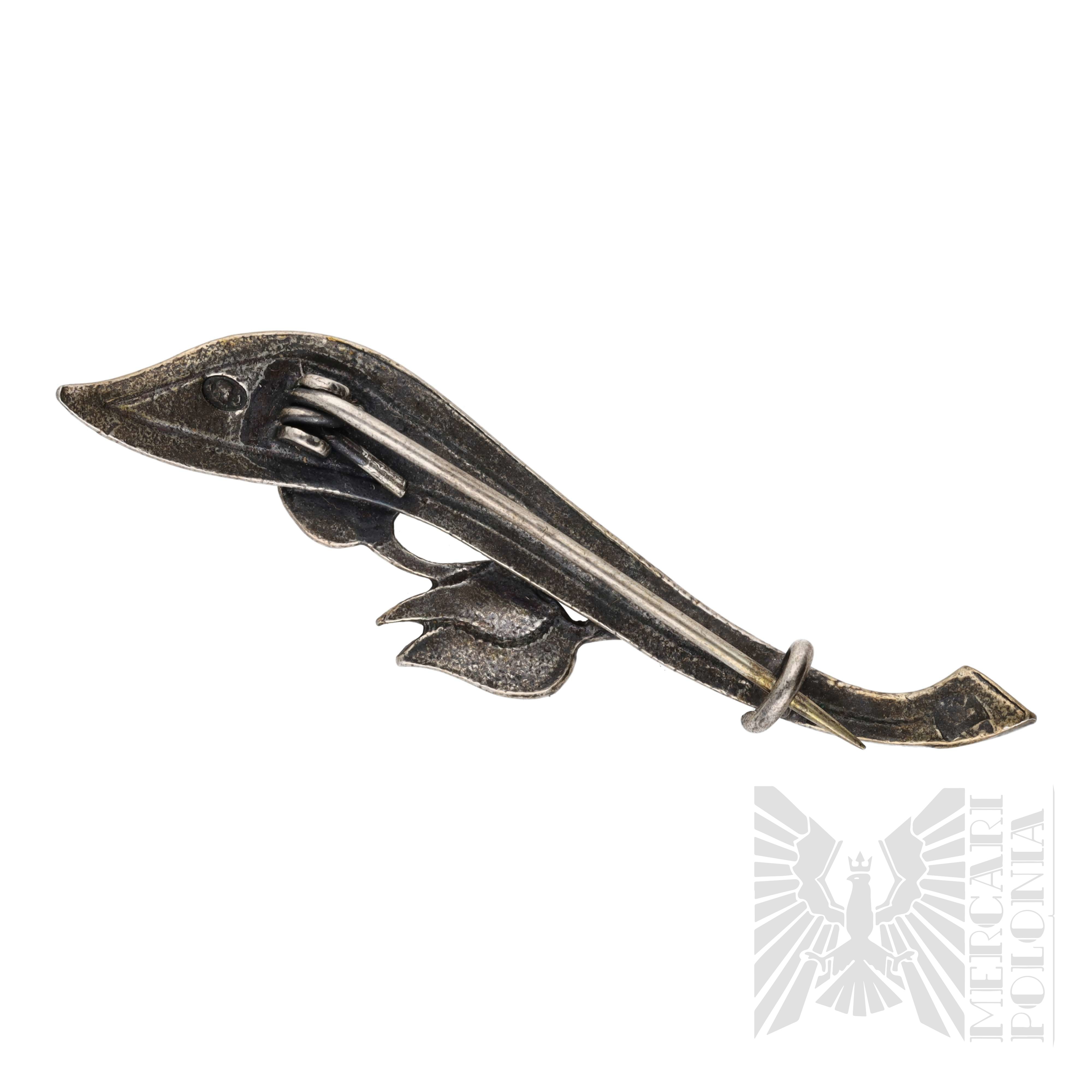 Brak wyraźnych sygnatur wytwórni, nie mniej, wzór ten istnieje w katalogu Artura Rogórza “Perły Polskiej Biżuterii” na stronie 132.