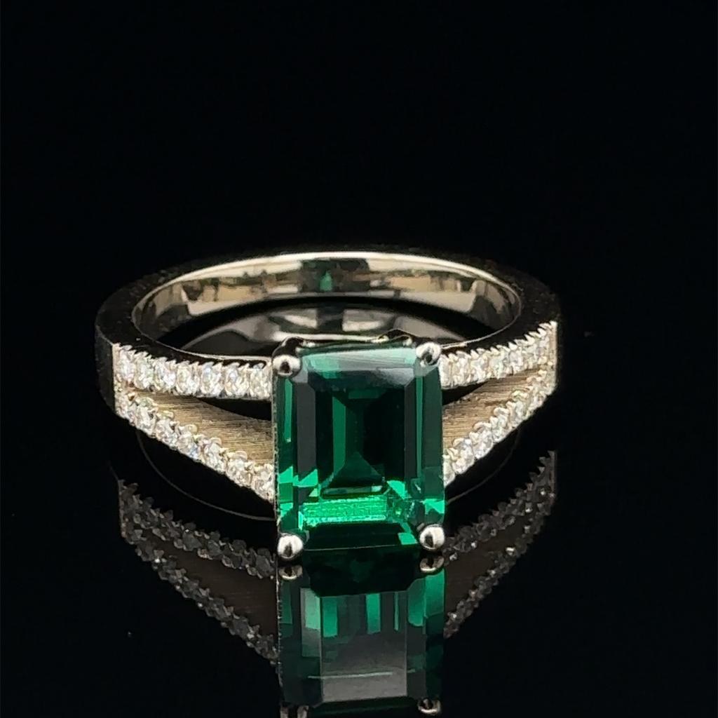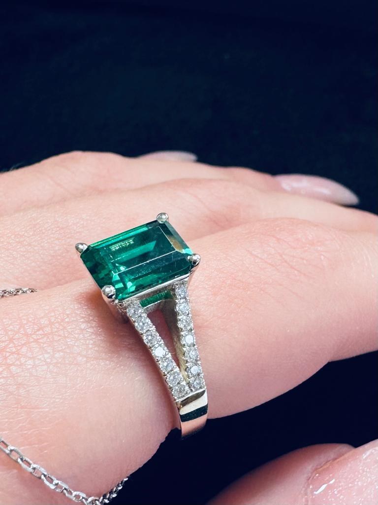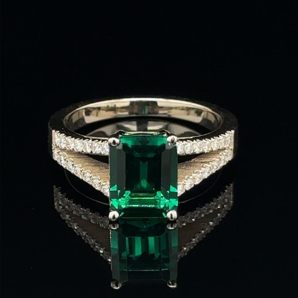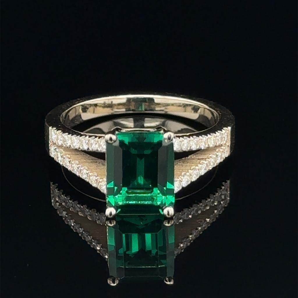 RING IN 14K WHITE GOLD 4.6 GR WITH LAB GROWN EMERALD 2.00 CARATS COLOR E BRILLIANTS FOR A TOTAL 0.28 CARATS COLOR D-F CLARITY VS-SI