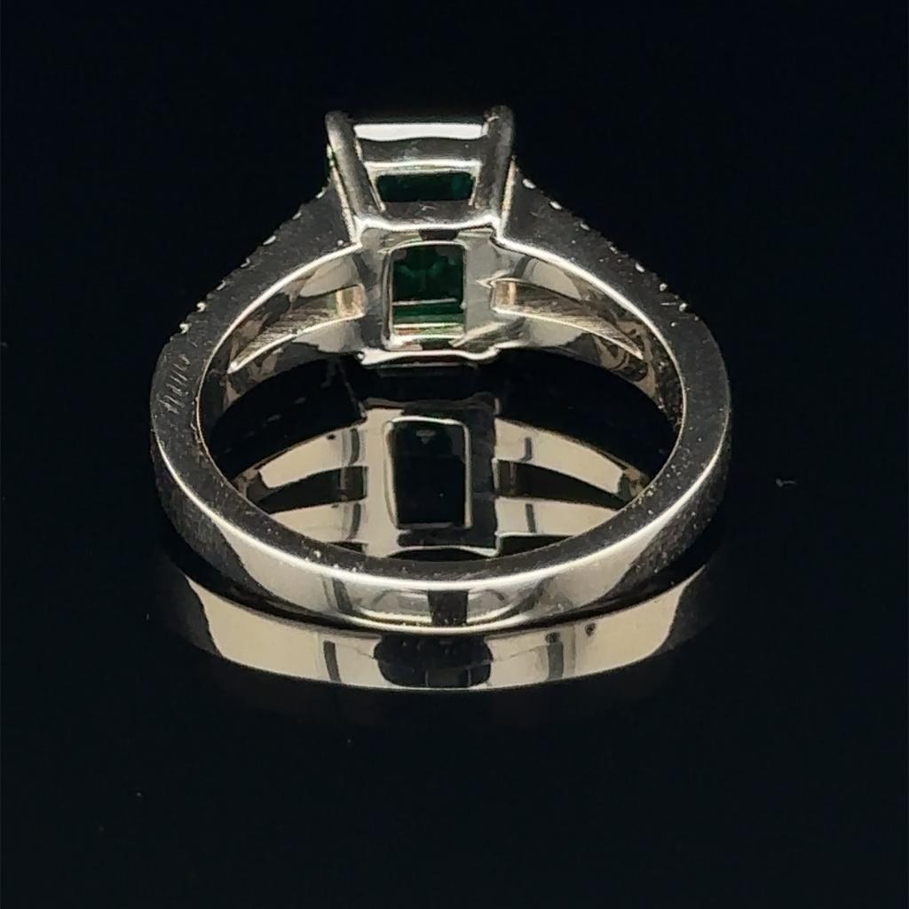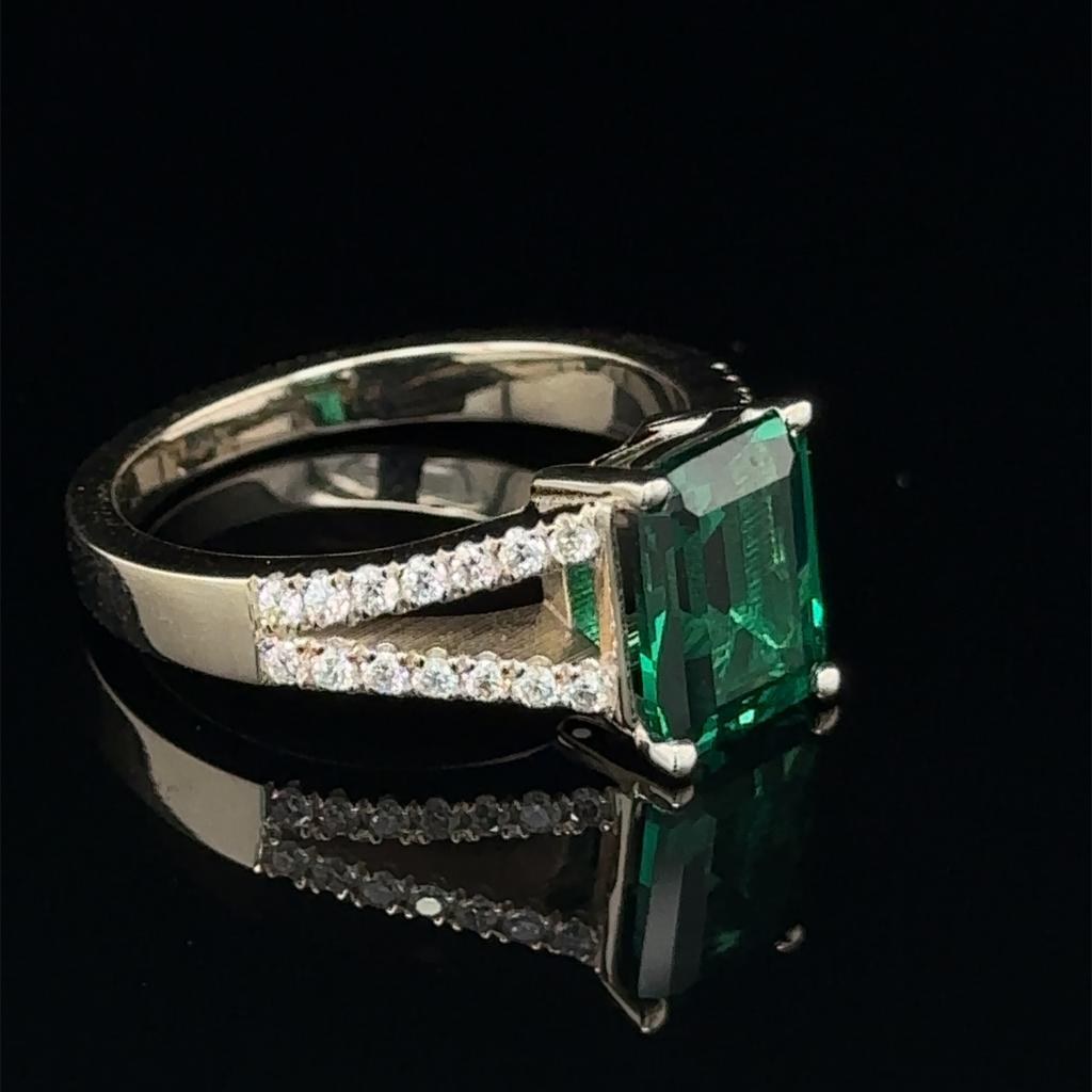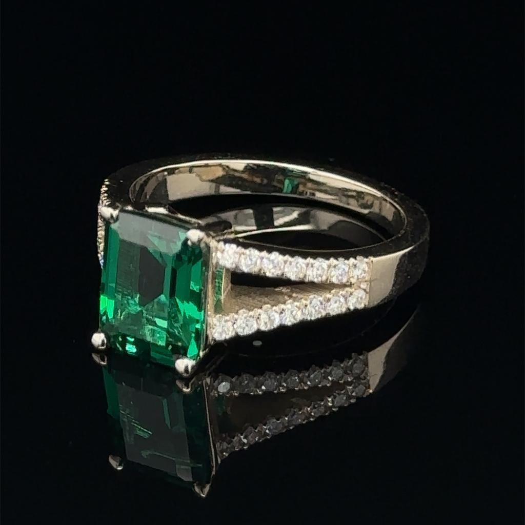 RING IN 14K WHITE GOLD 4.6 GR WITH LAB GROWN EMERALD 2.00 CARATS COLOR E BRILLIANTS FOR A TOTAL 0.28 CARATS COLOR D-F CLARITY VS-SI