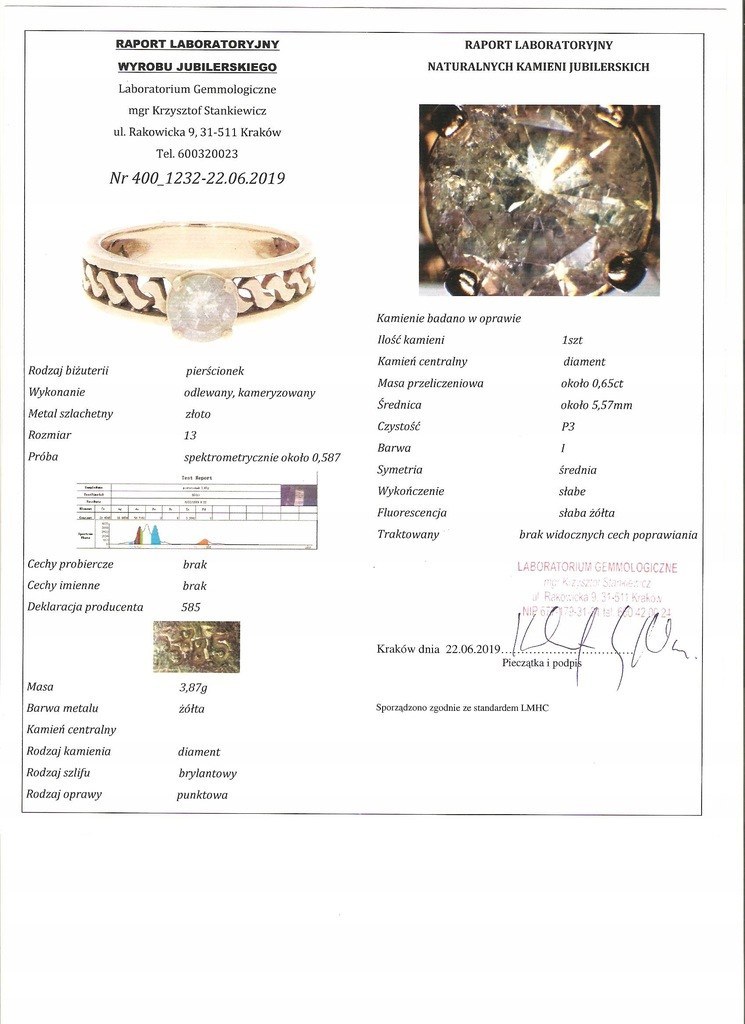 Posiada certyfikat gemmologiczny wyrobu jubilerskiego.